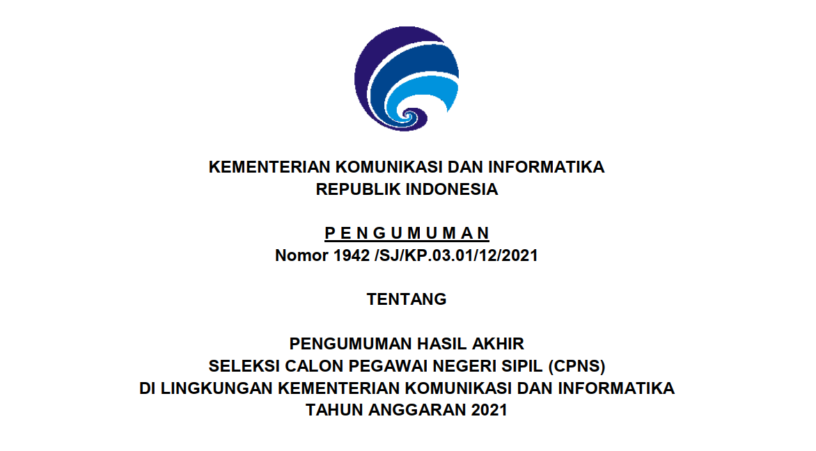 PENGUMUMAN HASIL AKHIR SELEKSI CALON PEGAWAI NEGERI SIPIL (CPNS) DI LINGKUNGAN KEMENTERIAN KOMUNIKASI DAN INFORMATIKA TAHUN ANGGARAN 2021