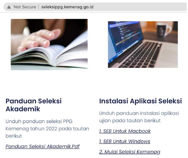 - Buka Browser pada laptop dan akses laman seleksippg.kemenag.go.id